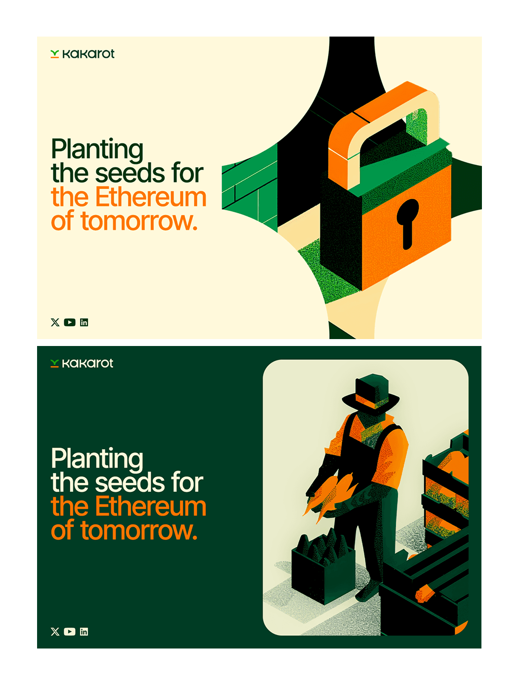I contributed to the development of Kakarot’s visual identity, a tech company specializing in blockchain and cryptographic proofs (ZKPs). I created a set of pictograms, stickers, and illustrations generated with MidJourney and refined in Photoshop, along with visuals for social media. I also designed the UI for their website, ensuring a clear and consistent user experience aligned with the brand’s technological positioning.